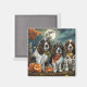 Släpp upp spookandan med den här eerie Halloween-designen med en hundar-förpackning under en mörk, månbelyst himmel, omgiven av flygande fladdermus och glödande pumpor. Perfekt för dem som kärlek en aning skrämmande roligt med sina hårigets vänner!