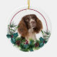 På framsidan av denna Helgdag är en vacker porträtt av en lever och vit Springer-spanjor-hund som pissar ut från en holly och evergreen bough. Röda bär och gräs-koner dekorerar huggen och gräs sprickor. Bilden placeras på en vit cirkel inom en tunn röd linjekrets. Baksidan av dekoratet har samma vergreka och cirkel med anpassningsbarnas text i rött.