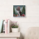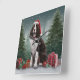 Mitt i en vintersaga njuter en lekfull hund av en snöig julmorgon och lämnar söta tassavtryck i den glänsande snön. Deras glädje och nyfikenhet ger värme till den förtrollande högtidsscenen och gör den verkligt magisk.