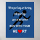 Din ben är tung, dina lungor är sprängda, men tävling är inte över än. Beslutsamhet behållor dig att gå som du springa från ditt hjärta. Den här motiverande poster har vita bokstäver på blå bakgrund med en springers silhuett. Kom ihåg det här citatet när du kör, oavsett om det är inomhus på tråden, tävla på spåret eller ute på den öppna vägen.
