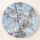 Denna vackra underlägg har söt vita blommar under vårtiden mot en mjuk blå bakgrund för ett färskt, feminin utseende.