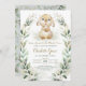 Den här elegantens duschinbjudan har en söt kanin i baby med en fantastisk vattenfärgsgrön krans