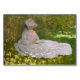 Claude Monet, olja på canvas 1872, är en landskapskonstruktion av en ung kvinna i fakturerande vit klänning och vit bonnet som sitter i skugga under en grupp träd och läser en bok. Runt henne går det intensiva ljuset från det varma vår sol genom löven på träd, och det gapar på det ljusa gräset och hennes klänning med starka solskyddsfläckar. Monet målade bilden i snabbt applicerad, lös penseldrag av olja färg, och fångade upp ett pastoralt moment av kvinnans omgivning mitt i naturen. Värdeintervallet från ljus till mörk och harmoni mellan grönt, brun, grått och vit ton fångar ljus, färg och atmosfär från en scen som målats ur livet. Claude Monet (1840-1926) var en av grundarna och huvuddrivkrafterna bakom den Fransk Impressionistiska målarskolan. Monet är född i Paris och har studerat med Eugene Boudin, som har lärt sig grunderna för oljemålning och plein-luft (öppen luft) ålmålning, och senare med målaren Charles Gleyre, som till slut är vänner med de olika imperialisterna Manet, Renoir, Bazille med flera. Förkastad av Paris Salon och andra platser vid 1800-talets akademiska inrättning, målade impressionisterna direkt från naturen, fångade upp flyktighetsmoment i tid, i ljusa, sönderslagna färg och små, snabba borshstrokningar. Monet bodde och studerade i London och Nederländerna och gav många målningar fram till den första Impressionistiska utställningen 1874, där hans målning Impression: Sunrise fick beröm och förtjänade sin berömd moniker. Efter att hans barn och hans förste fru Camille dog, bosatte sig Monet i Giverny, där allt större framgångar gjorde det möjligt för honom att etablera ett hem och en studio omgiven av utvecklade trädgårdar. Monet målade upp många landskap, inklusive trädgårdsscener och hans berömd katedralserie, med allt större oro för ljus, färg och atmosfär, med oro för färg och former som i sin äldre ålder gränsade till ett slags abstraktion, skapar honom en av de mest uppskattade målarna från den moderna tiden.