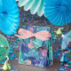 Speckled glossy paint daubs layered thickly in a solid field of pinks, blues and aqua teals.
