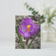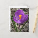 Fotografi av en vacker lila- och gult-krokus som just har dykt upp från smuts och som blåser i fullt under tidigt-våren. *Jag har angett att vykortet ska skrivas ut på obestruket projektionsyta som standard avslutar pappert. Du kan också välja Halvglans i stället, men vykortet skrivs ut på en halvglans som är papper på båda sidor och som är något svårare att skriva på.