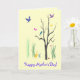 Det här Mors dag-kortet skapar en färgstark, viskös stämning i vår. Fåglarna flyger och färdas i träd. Smittfjärilar i det varma luft. En anka-vaddel i gräset. Det finns till och med ett litet snigel på marken. Bilden upprepas inuti. All text kan anpassas efter dina behov i kostym.