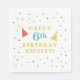 En festiv napkin i barns födelsedag med regnbågssprinkler, hög ålder och havshattar i hand plockade party.