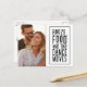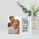 Spara datumvykorten för det roligt-vänliga paret som inte kan vänta med att sitt bröllop-datum med sin familj och sina vänner. Svart och vit typografi med anpassningsbarnas foto tryckt i en svartvit typografi som visar: Sprit, mat och dålig dansrörelse. Anpassa kortets fram- och baksida med information om foto + bröllop.