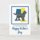 Sprocker Spaniel hundsilhuett i gul, blå och svart modernt rutmönster. "Till den bästa hundpappan" och "Grattis på faderns dag" på utsidan och en bedårande hälsning på insidan som kan ändras till vad du vill. Ett bra sätt att fira en husdjursägares fadersdag.