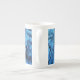Spruce grenar täckt med snö och frostkristaller benporslin mugg