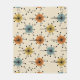 Ett modernt mönster i mitten av århundradet med geometriska former av färgstarka blommor av abstrakt och sputnikstjärnor.