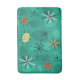 1950-talets återformaterade moderna design i mitten av århundradet med sputnik stjärnor mot en turkobakgrund med cirkelformer.