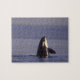 Spyhoppande späckhuggare (Orcinus orca) nära Pussel