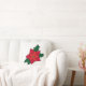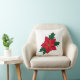 Torka dekorativ kudde med röd orange jultomte, med mörk grönt löv och svart kontur. Denna utformning läggs till på båda sidor om kudden