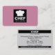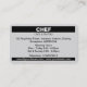 En designad mall för visitkort för snyggt för ett kafé, restaurang eller kafé. Kortet har en 1,3-tums svart panel på framsidan med en generisk kocksmatares hatt/logotyp med företaget namn och verksamhetstyp under. Kortets baksida har en svart sidhuvud- och sidfotslayout där företaget namn upprepas i sidhuvudet och affärstypen under. Den centrala sektionen har adress överst med öppningstider i mitten, med telefonnummer under. Den svarta sidfoten innehåller e-postmeddelandet och webbplatsens adress. Den här mallen är designad för att vara enkel att anpassa, men dina uppgifter kommer naturligtvis att vara annorlunda och kan behöva anpassas ytterligare, t.ex. om namn är längre eller så. Färg kan också bytas ut mot bakgrund.
