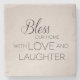 Fyrkantig marmorsten underlägg, med beige bakgrund med "Bless our Home With Kärlek and Laughter". Trevligt för en vän!