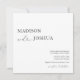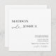 De här bröllopsinbjudningarna i contemporary erbjuder ett modernt tillvägagångssätt för en svartvit inbjudan. Typsnitt är en alternerande fet svart serif och handskriven stil-kalligrafi. Den har en känslig hjärtsvikt och är i samma typsnitt som den mottagning som ska följa.