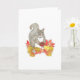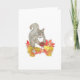 Önska en Glad Thanksgiving till vänner och familj eller skicka helt enkelt ett höstkort med denna förtjusande akvarell som presenterar en söt grå ekorre som håller en liten pecanpaj (hans favorit!) och sitter i en hög med höstfärgade blad.