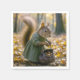 En charmerande ekorre i en underbar grönt klänning, som på ett skickligt sätt samlar nöt i sin handväska mitt i den vibrerande hösten skogen