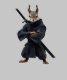 Slim squirrel samurai i en svart kimono, arm, katana på ryggen. En tyst varning på hans post: "kom inte nära. Provokera inte. Ett sådant hårig som beskyddare av din fred.