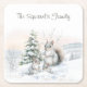Squirrels in Winter Snow Underlägg Papper Kvadrat
