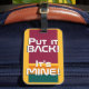 Sri Lankas nationella Flagga Funny Patriotic Luggage Tag med Sri Lankas nationella färg som täcker framsidan av märkrn. Lustigt text "Sätt tillbaka den!" Det är MINE" är skrivet över flagga färg. Anpassadet Text är fullt ut med funktionen "Anpassa den!". Andra sidan av märkrn är reserverad för din information. Den här roligten är Sri Lankas bagagemärke som är perfektens följeslagare till din resväska och den vackra gåvan till vilken tillfälle som helst. © LänderAvVärlden