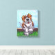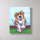 Kanvastrycket "Animal Parad Cute St. Bernard" skapat av Imagine Det där! Utformningen har vår söta stearin och vita hund som står på en grassgård med ett rött tegelstaket, ett texturerat blå himmel och en lekfull vågigt lila gräns som målas av våra begåvade barn, Traci Van Wagoner, bok. Den roligt valpen har en framskjuten ställning med ett upphöjt tass. Den här roligten konst är perfekt för St Bernard-hundälskare och humoristisk konst älskare i alla åldrar. På många av våra vita S:t Bernard-dogmatiska produkter hittar du den här söta marionetten som kommer och följer med den lekande Saint Bernard-hund huvud på ena sidan och den roliga hundens svan på den andra. Gå med Parad och ge ett leende till ansikte om någon du kärlek med en gåva av vår söta St. Bernard hund. Woof!