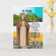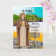 St. Brigid of Ireland (c. 451-c. 525) is the fourth saint featured in our Apron Series. A 6th-century Gaelic nun, St. Brigid founded the famous double monastery at Kildare (the “church of the oak") as well as several other Irish nunneries. She was a well-known miracle worker for the poor and is especially associated with beer. + Beer was an important staple of the medieval diet, not just a recreational drink. Safer to drink than the local, often polluted water, beer was considered a nutrient, earning a reputation as ‘liquid bread.’ In St. Brigid’s day, beer was a gruit, an herbal brew made from unmalted barley (Hordeum vulgare) and flavored with bog myrtle (Myrica gale) or meadowsweet (Filipendula ulmaria), not hops (Humulus lupulus). Hops were not used in Irish beer-making until the 16th century due to limited regional availability. + According to tradition, St. Brigid once turned ordinary bathwater into beer to provide for the patients of a leper colony when their supply ran dry. Similarly, another time, she turned bathwater into beer to fete the leper colony’s visiting clerics. Finally, one year, late in Holy Week, she miraculously furnished beer from Maundy Thursday until Easter Sunday to some 18 local churches from a single bottomless barrel. + So important was beer to her, St. Brigid wished even the saints in heaven and God Himself could enjoy its pleasures, allegedly authoring a poem to that effect that is quoted in part here. + In this artwork, St. Brigid holds an oversized glass beer mug or stein on the rocky shore of her imaginary lake of beer (identified in Old Irish and English on a weathered, wooden, AI-generated signpost from Pixabay). The figure of St. Brigid was extracted and modified from an 1881 commemorative devotional print (holy card) originally published in chromolithography by B. K. [B. Kühlen], at Mönchengladbach, Germany, and is from the designer’s private collection of religious ephemera. The beer lake background is a pastiche created by Saints_Aplenty from five separate Pixabay images. + Feast: February 1 (St. Brigid’s Day coincides with Imbolc, a traditional Gaelic seasonal festival with Celtic origins, marking the first day of spring in Ireland. Since 2023, St. Brigid’s Day has been celebrated as a national public holiday in her honor.)