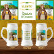 St. Brigid of Ireland (c. 451-c. 525) is the fourth saint featured in our Apron Series. A 6th-century Gaelic nun, St. Brigid founded the famous double monastery at Kildare (the “church of the oak") as well as several other Irish nunneries. She was a well-known miracle worker for the poor and is especially associated with beer. + Beer was an important staple of the medieval diet, not just a recreational drink. Safer to drink than the local, often polluted water, beer was considered a nutrient, earning a reputation as ‘liquid bread.’ In St. Brigid’s day, beer was a gruit, an herbal brew made from unmalted barley (Hordeum vulgare) and flavored with bog myrtle (Myrica gale) or meadowsweet (Filipendula ulmaria), not hops (Humulus lupulus). Hops were not used in Irish beer-making until the 16th century due to limited regional availability. + According to tradition, St. Brigid once turned ordinary bathwater into beer to provide for the patients of a leper colony when their supply ran dry. Similarly, another time, she turned bathwater into beer to fete the leper colony’s visiting clerics. Finally, one year, late in Holy Week, she miraculously furnished beer from Maundy Thursday until Easter Sunday to some 18 local churches from a single bottomless barrel. + So important was beer to her, St. Brigid wished even the saints in heaven and God Himself could enjoy its pleasures, allegedly authoring a poem to that effect that is quoted in part here. + In this artwork, St. Brigid holds an oversized glass beer mug or stein on the rocky shore of her imaginary lake of beer (identified in Old Irish and English on a weathered, wooden, AI-generated signpost from Pixabay). The figure of St. Brigid was extracted and modified from an 1881 commemorative devotional print (holy card) originally published in chromolithography by B. K. [B. Kühlen], at Mönchengladbach, Germany, and is from the designer’s private collection of religious ephemera. The beer lake background is a pastiche created by Saints_Aplenty from five separate Pixabay images. + Feast: February 1 (St. Brigid’s Day coincides with Imbolc, a traditional Gaelic seasonal festival with Celtic origins, marking the first day of spring in Ireland. Since 2023, St. Brigid’s Day has been celebrated as a national public holiday in her honor.)