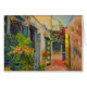 Detta färgstarka anteckningskort innehåller en anpassning av en bra konsmålning av en liten gata i Saint Croix, Jungfruöarna, av den amerikanske konstnären Anna Unterman. Den ljusa, soliga scenen är ett upplopp av färg. Det finns en röd, rosa och magenta bougainvillea-vinstockar över stilbanan, liksom orange-flammor och andra shruber och löv för grönt. Färgämnet byggnad är gult, guld, blått och grönt. Omtryckt med tillstånd från Anna Untermans gods. Alla höger reserverade.