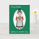 Ett hälsningskort för en lärare på St David-dagen, med en liten flicka som bär den nationella kostymen och som håller en massa daffodils. Från en handmålad illustration av Judy Adamson.