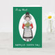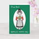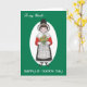 En hälsningskort för en morbror, med en liten flicka som bär den nationella kostymen och som håller en massa daffodils. Från en handmålad illustration av Judy Adamson.