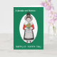 Ett hälsningskort från St David för att personifiera, med en liten flicka som bär den nationella kostymen och som håller ihop en bunt av kostym. Från en handmålad illustration av Judy Adamson.
