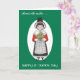 En hälsningskort från St David på "Över Miles", med en liten flicka som bär den nationella kostymen och som håller en massa daffodils. Från en handmålad illustration av Judy Adamson.