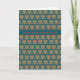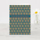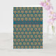 Ett hälsningskort för söt till St Dwynwen-dagen med mönster av rött och grönt i ett folkkonst stil mot mörk blått bakgrund och Lycklig St Dwynwens dag på walesiska.
