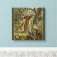 Snygg bild av St Francis of Assisi, älskare av djur med hjort, varg, fåglar, i en skog. Grönt och Guld Gräns