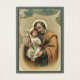 Vintage bild om St. Joseph som håller Baby Jesus med en lilja. En vacker bön från Memorare till St. Joseph på baksidan.
