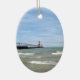 Med fyren på Sjö Michigan, så som det ser ut från Tiscornia Beach i St Joe Michigan.