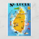 Vintage, retro karta över ön St. Lucia i Västindien återanvänd!