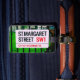 Ditt hänga lös det ska stativ ut på karusellen med denna gata undertecknar från den Sanktt Margaret gatan i staden av den Westminster bagagemärkren.