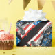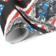 St. Michael är skyddshelgon för tillsatta lagar och här håller han en polisbaton i vardera handen. Papper polisförpackning. Handklovar hänger från bälte med en amerikansk flagga. Religiösa polis som slår papper. Polisen över hans bröst och stora ängel vingar. Försvara oss i Battbanderollen. Manar polis St... Michael presenting som slår papper.