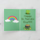 Överför den speciella hälsningen ett detta Sts Patrick dag med detta älskvärda kort. Detta kort presenterar en regnbåge, kruka av guld, och en fe på bekläda med ord "grundar jag krukan av guld!!!", skriftligt i anpassadetext. Insidan som lämnas av kortet, är grönt och presenterar en färgrik regnbågesitta atop moln, och den inre höger av kortet är grönt och presenterar en grönt- och gulttop hat upptill och svartkrukan av guld på grunden, med "lyckliga skriftliga Sts Patrick dag" i mittet. Inhandla ditt kort i dag!