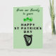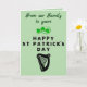 St Patricks dag-kort från vårt hus till ditt, bokstäverna är i irländsk dryckesstil med tillagd Shamrock och Harpa.