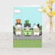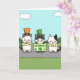 This card shows three friendly, humanlike cats lined up like a little parade, their rosy cheeks and close spacing giving the scene a sweet, companionable feel 💚. The middle cat is black-and-white and wears a green top hat, holding a sign sprinkled with small shamrocks that reads “St. Patrick’s.” To the left, a white cat with black patches wears an orange top hat and lifts a yellow sign that says “Happy,” angled slightly toward the center as if leaning in. On the right, another black-and-white cat completes the message with a matching sign that reads “Day,” keeping the words evenly spaced across the trio. All three have simple, expressive faces with bright eyes and gentle smiles, like they’re sharing an inside joke together ☘️. The lettering is dark and easy to read against the light signs, with the shamrock accents clustered around the “St. Patrick’s” sign for extra holiday detail. Above them, “Happy,” “St. Patrick’s,” and “Day” sit in a neat left-to-right row across the signs, set against a light blue sky with two rounded clouds, soft green bushes, and wavy green grass in the foreground.