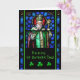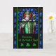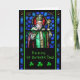 Vacker glasmålning av Irlands biskop, St. Patrick själv. Insidan har en irländsk bön för de troende och en irländsk välsignelse.