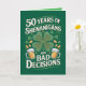 Att fylla 50 på St. Patrick's Day är en gyllene milstolpe insvept i ikonisk irländsk tur! Detta festliga kort är det perfekta sättet att hedra den magiska kombinationen och skicka hjärtliga önskningar för en födelsedag som är lika fantastisk och festlig. Hitta det perfekta kortet för detta dubbelt speciella tillfälle här!
