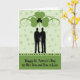 Patrick's day card for Son and Son in Law. Detta är ett kort för söt grönt med en silhuett av två handjur som håller händer, med en schampdesign på kortets överdel. Konstruktionens bakgrund är grönt med mindre schack. Kortets färg är grönt och svart.