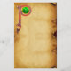 Elegant Celtic red alphabet brev, motiv för geometrisk blommigt från ett medeleval-manuskript på gammalt brunt parchment av åldras med en 3D-grönt schamprock gem stone jewel av Bulgan Lumini (c)