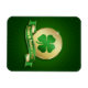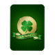 Patrick's Day illustration med ett guldmynt med schamprock och en visning med ribbon "Lycklig St. Patrick's Day" i modernt fetstilt guld brev på elegantens grönt.