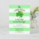 Den vänligaste lilla klöver i plåstret är på väg! Den här förtjusande St patrick's day, som kallas för inbjudningskort för babydusch, är främst av grönt och vita färg. Den här kortdesignen har en söt, leende fyrklöver över en grönt och vit, strimlad bakgrund. Kortets baksida har en mörk grönt bakgrund i färg. Den här inbjudan är redot som ska vara personlig och kan anpassas genom att klicka på verktygen Redigera design som du har tillgång till ovan. Om du vill ha mer liknande designade babyduschartiklar kan du checka ut samlingen och besöka butiken.
